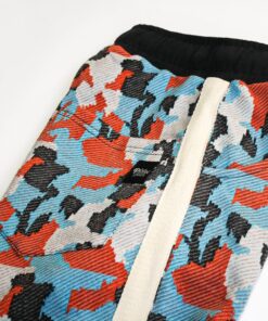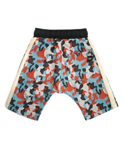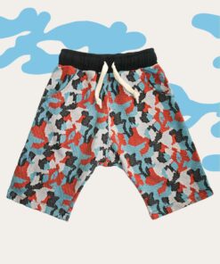 Bermuda infantil com modelagem saruel em malha jacquard camuflada. Possui cós em malha canelada com elástico interno e regulador, bolsos faca e faixa de algodão cru nas laterais. Nossas peças tem as medidas maiores que o padrão do mercado, sugerimos comprar o tamanho equivalente à idade da criança.
