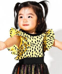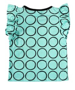 Blusa para bebês em malha de algodão com estampa exclusiva de bolas. Tem as mangas com babadinhos e bolsinho lateral em cor contrastante, perfeita para compor looks lindos e modernos com calças ou saias. Paras as bebezinhas mais descoladas!