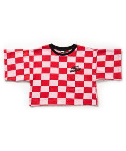 Blusa infantil de manga curta em moletinho jacquard 100% algodão. Possui a modelagem bem ampla, um pouco abaixo da cintura, com bordado lateral. Para as meninas mais descoladas do universo! Nossas peças tem as medidas maiores que o padrão do mercado, sugerimos comprar o tamanho equivalente à idade da criança.