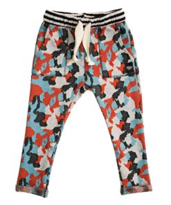Calça Unissex Camuflada para bebês e crianças em malha jacquard de algodão. Tem cós listrado com elástico interno e regulador funcional, bolsos frontais e bainha dobrada. Perfeita para qualquer estação, para os meninos e meninas mais estilosos da Galáxia! Nossas peças tem as medidas maiores que o padrão do mercado, sugerimos comprar o tamanho equivalente à idade da criança.