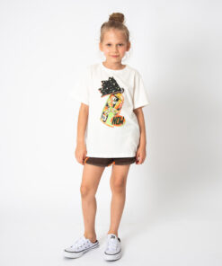 Camiseta infantil em meia malha 100% algodão com maxi estampa exclusiva. Nossas peças tem as medidas maiores que o padrão do mercado, sugerimos comprar o tamanho equivalente à idade da criança.