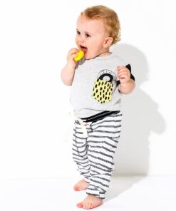 Camiseta unissex de manga curta para bebê em malha de viscose com elastano. Possui bolsinho lateral estampado sobre o etezinho Nix, para meninos e meninas que amam uma aventura sem perder o estilo!