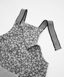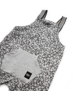 Jardineira Unissex em moletom leve com stretch, super macia e confortável. Com estampa exclusiva de estrelinhas, tem as alças de cadarço com regulagem, bolso canguru e bainha dobrada. Pode ser usada sozinha ou com blusa por baixo nos dias mais frios.