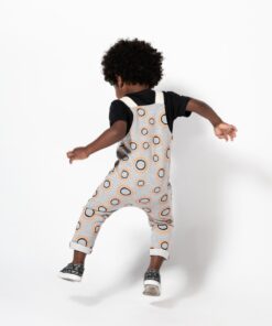 Jardineira Unissex em moletom leve com stretch para bebês e crianças. A estampa exclusiva de círculos manuais possui combinação de cores diferentes na parte da frente e traseira. Tem as alças de cadarço cru com regulagem, bolsinho frontal e bainha dobrada. Pode ser usada sozinha nos dias mais quentes e é perfeita para os dias mais frios quando coordenada com camisetinha de manga longa por baixo. Nossas peças tem as medidas maiores que o padrão do mercado, sugerimos comprar o tamanho equivalente à idade da criança.