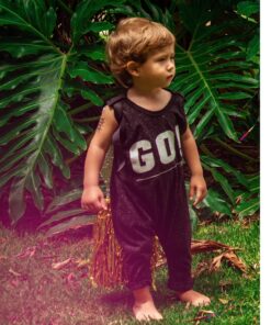 Macacão unissex sem mangas em malha leve com efeito botonê, macio e muito confortável. Possui abertura com botoes de pressão nos ombros e estampa localizada. É a peça ideal para os pequenos que adoram uma aventura sem perder o estilo!