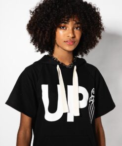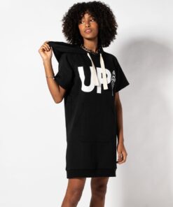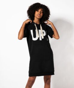 Vestido infantil manga curta em moletom com capuz e bolso canguru. Para as meninas mais descoladas do universo! Nossas peças tem as medidas maiores que o padrão do mercado, sugerimos comprar o tamanho equivalente à idade da criança.