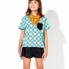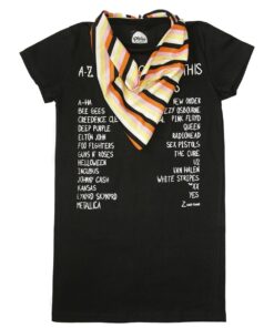 Vestido infantil em malha de algodão com estampa exclusiva. Estilo camisetão, é reto, soltinho no corpo e vem acompanhado de um lencinho listrado, que pode ser usado de diversas formas: amarrado no pescoço, na cintura, como faixa de cabelo ou do jeito que sua imaginação quiser!
