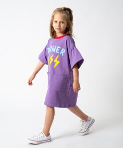 Vestido Infantil em moletom de algodão com estampa exclusiva. Possui modelagem reta e soltinha no corpo, gola de cor contrastante, mangas amplas e bolsinhos frontais. Para as meninas mais estilosas da Galáxia! Nossas peças tem as medidas maiores que o padrão do mercado, sugerimos comprar o tamanho equivalente à idade da criança.