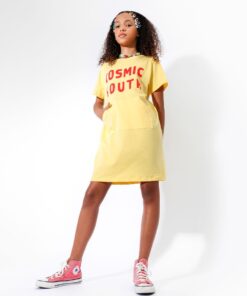 Vestido infantil estilo camisetão em malha 100% algodão. Possui a modelagem reta e soltinha, estampa de frase e bolso canguru. Para as meninas mais descoladas do universo! Nossas peças tem as medidas maiores que o padrão do mercado, sugerimos comprar o tamanho equivalente à idade da criança.